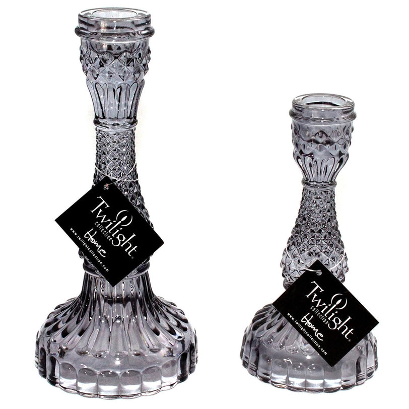These beautiful vintage-inspired pressed glass coloured candle sticks are just the thing to compliment your décor or brighten up your dining room table.