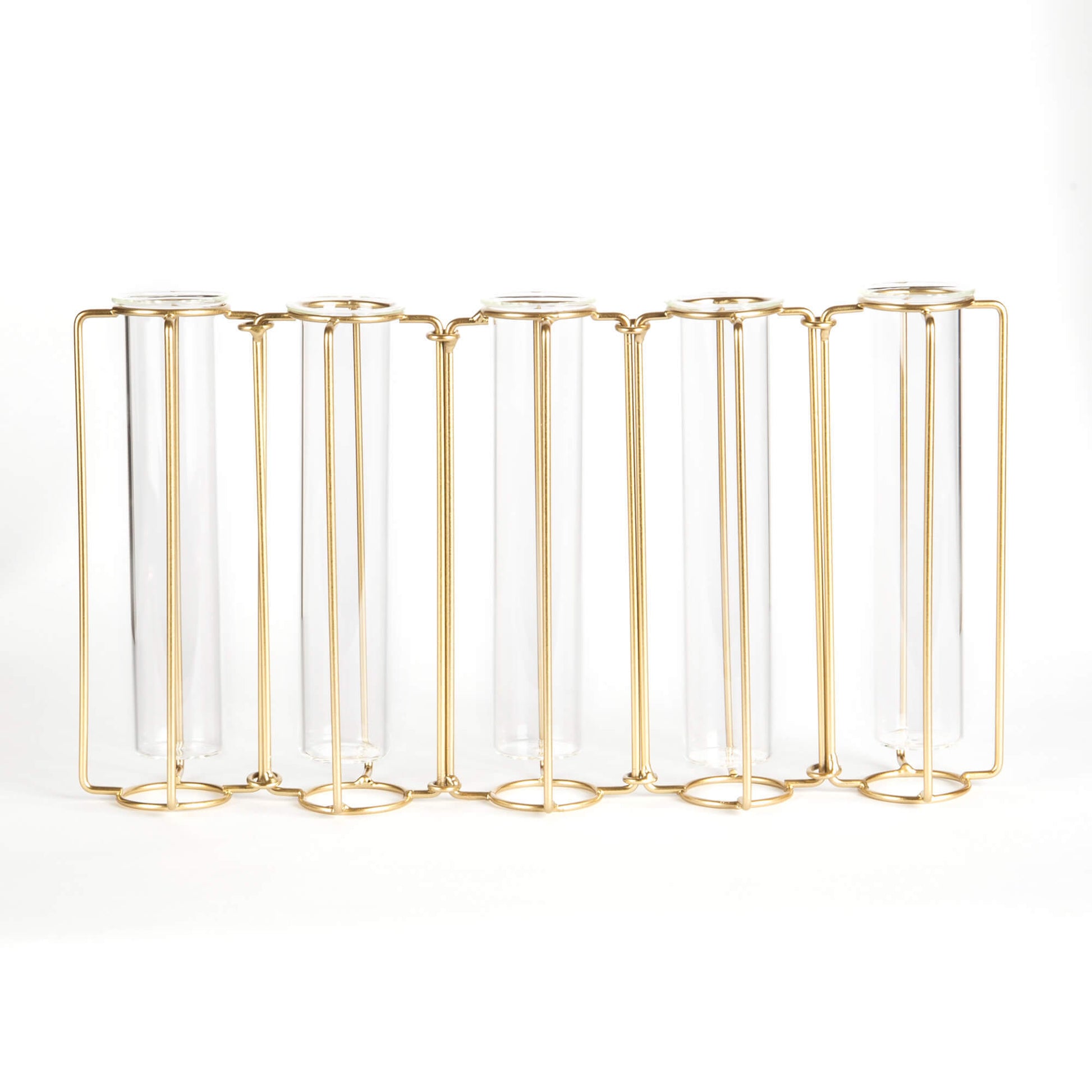 GOLD WIRE ADJUSTABLE VASE WITH 5 GLASS TUBES