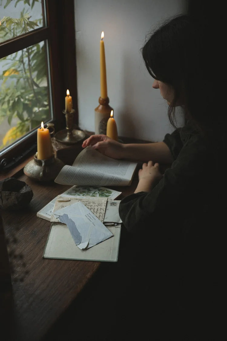 Our classic 8” taper candle in traditional golden toffee beeswax is perfect for adding a poetic atmosphere to your creative work, intimate gatherings, and personal rituals. Their very subtle honey scent is naturally present in the beeswax, and is unobtrusive. Beeswax burns cleans and bright and is virtually dripless, although all candles should be burned on a heat-resistant surface, and away from drafts if the wick starts to flicker.