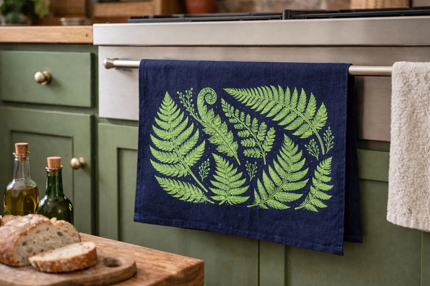 Tea Towel/Ferns/Navy/Linen/Kitchen Towels